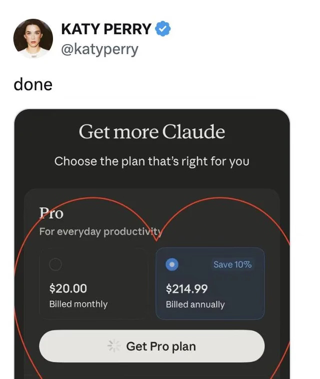 심지어 무려 Katy Perry가 Claude 유료 구독을 인증하는 기염을 토했다.